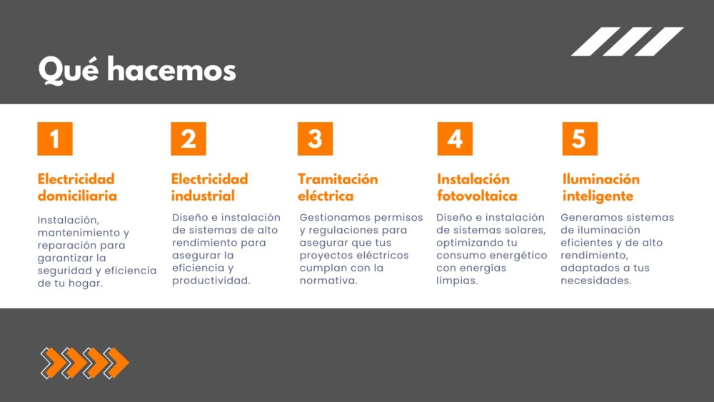 Ofrecemos soluciones en ingeniería eléctrica, instalaciones fotovoltaicas, electricidad domiciliaria e industrial, además de servicios de construcción y montaje.