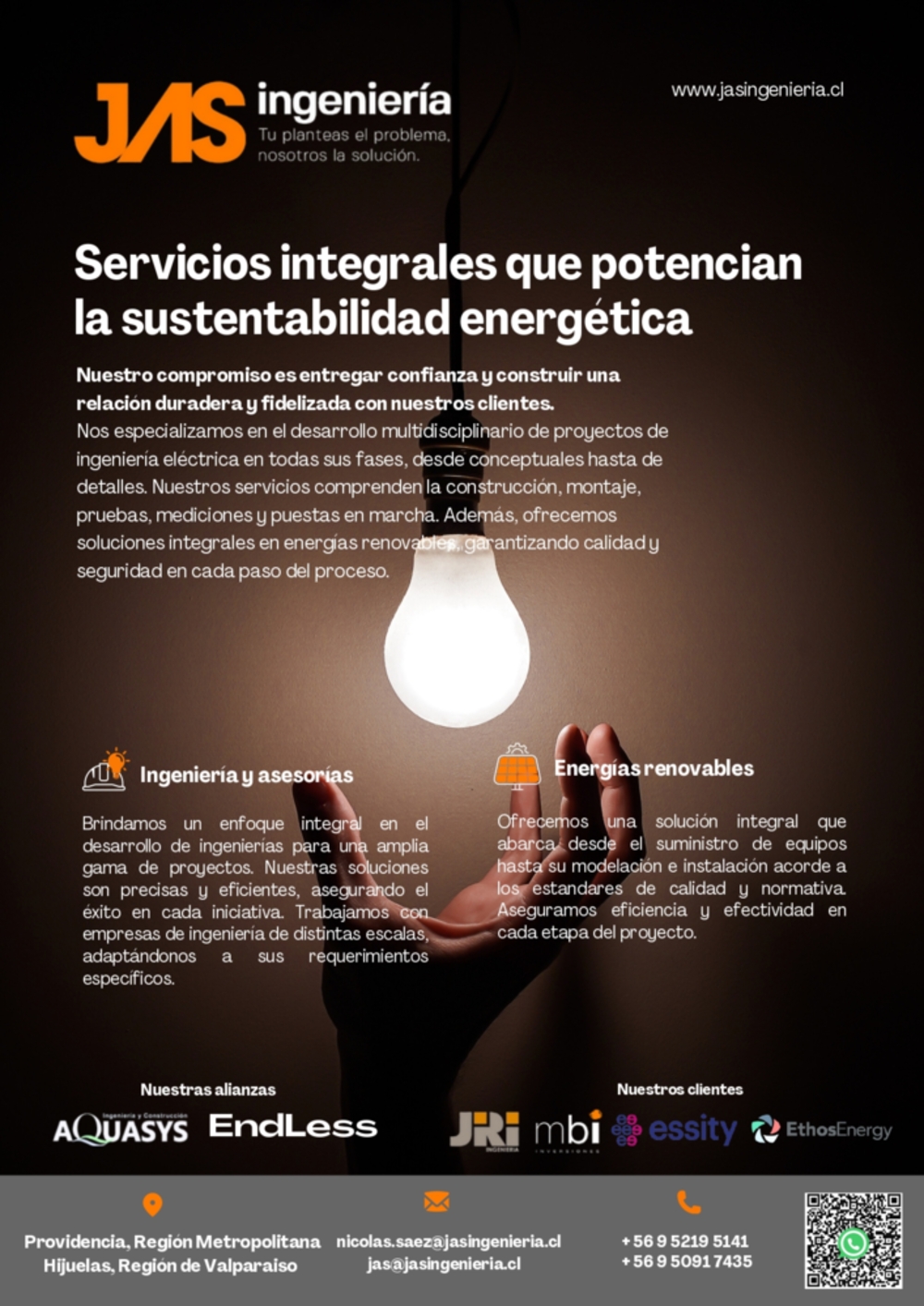 JASIngeniería es una empresa chilena dedicada al desarrollo de proyectos eléctricos, de ingeniería y energías renovables.